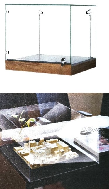 | Caja de cristal tamaño 50x50x30 cm, con base de madera de 5cm color negro, cerradura y bisagra para colocación de maqueta y luces LED cálidas en las esquinas superiores. | 1 | pieza |