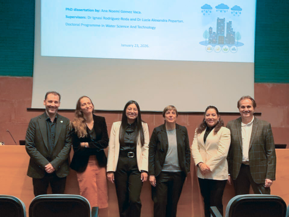 Durante el acto académico, se llevó a cabo la defensa de la tesis doctoral de Ana Noemí Gómez Vaca, quien es titulada de la UCB Tarija. El trabajo de investigación presentado se tituló: «Multidimensional spatial index of long-term vulnerability to urban flooding: methodological design, application in Girona, and development of a virtual city simulator».