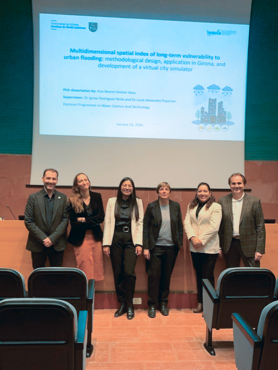 Durante el acto académico, se llevó a cabo la defensa de la tesis doctoral de Ana Noemí Gómez Vaca, quien es titulada de la UCB Tarija. El trabajo de investigación presentado se tituló: «Multidimensional spatial index of long-term vulnerability to urban flooding: methodological design, application in Girona, and development of a virtual city simulator».
